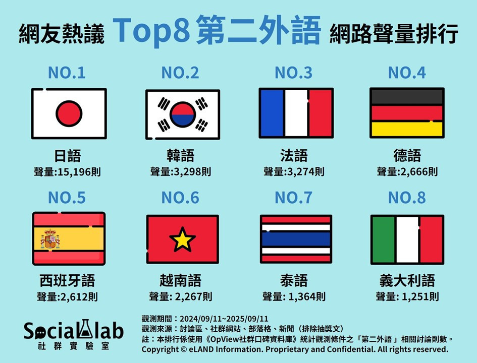 觀察近一年網友針對「第二外語」的討論,「日語」無疑是臺灣人學習的首選。除了日本動漫、偶像文化等對臺灣影響深遠外,鄰近國家的地理優勢,也讓日語成為許多人進修的首選。