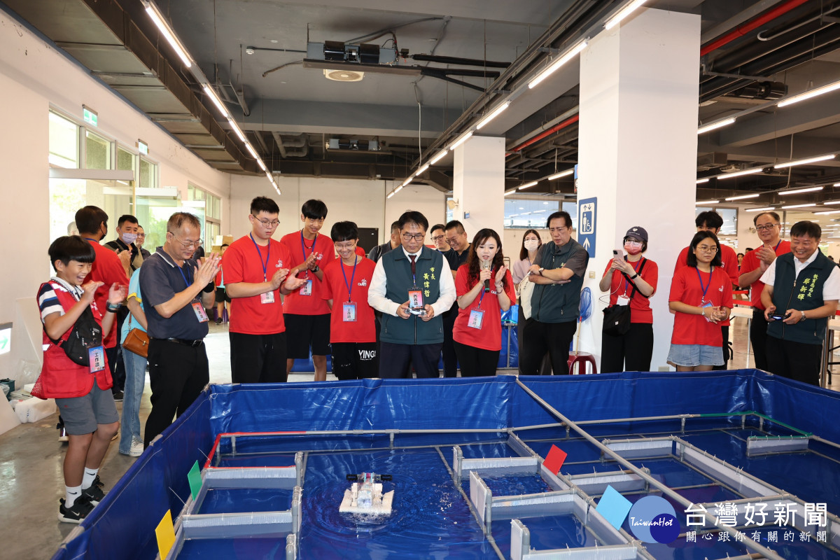 由台南市政府教育局主辦的「智慧城市-AI機器人全國賽」今(19)日在嘉南藥理大學熱鬧揭幕,全國各縣市選手齊聚台南同場競技。台南市長黃偉哲親自到場體驗「智慧倉儲」、「步步為營」、「智慧建築」、「海洋守護」等主題任務,期勉大家在競賽中發揮創造力與解決問題的能力,勇敢挑戰自我,成為推動智慧科技發展的新世代人才。