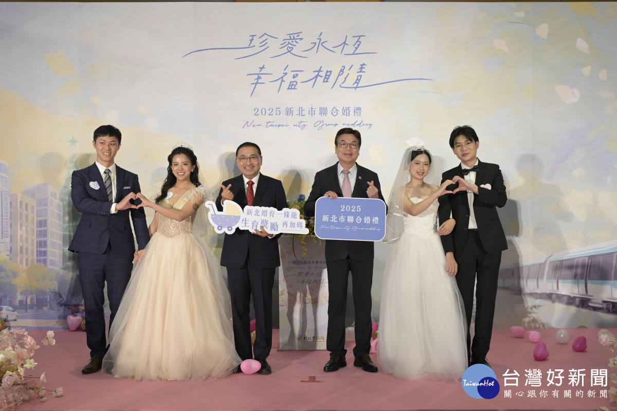 侯友宜強調,新北市為鼓勵新人在地婚育生養,持續推動「婚育一條龍」政策,從單身聯誼、聯合婚禮到生育補助、好孕專車、公共托育等,全方位協助市民在新北安心成家。明(115)年1月起,生育獎勵金再度加碼為第一名4萬元、第二名4.5萬元、第三名(含)以後5萬元,減緩家長在育兒經濟上的負擔。