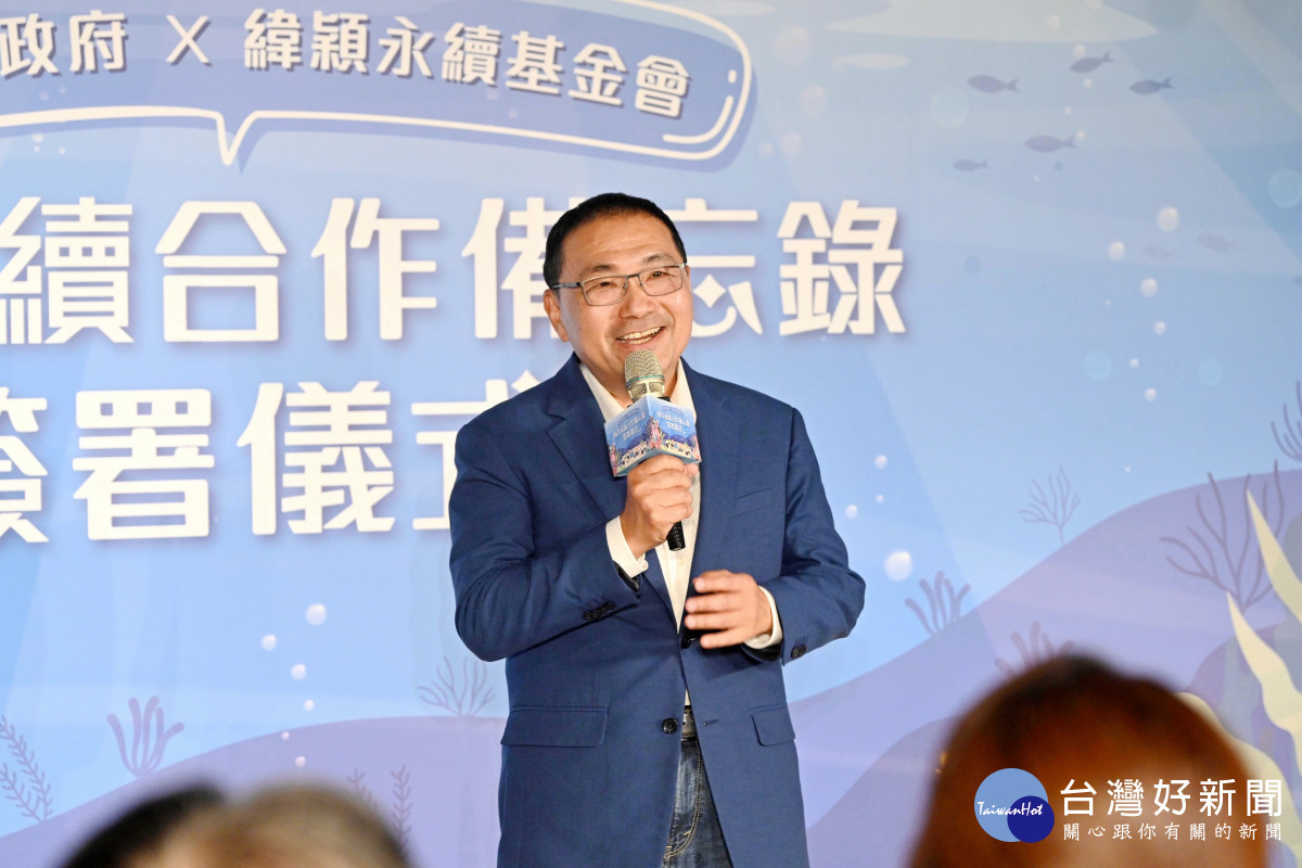 為攜手推動台灣海洋永續,新北市長侯友宜今(20)日與緯穎永續基金會簽署「海洋永續合作備忘錄」。侯友宜表示,新北市擁有145公里海岸線及28座漁港,是全國本島漁港最多的城市,此次透過產官學合作,結合政府、學界與民間力量,為東北角海岸的海洋生態盡一份心力,展現守護海洋的決心。