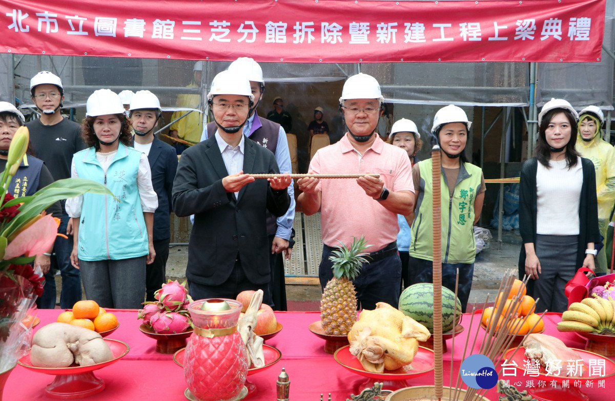 新北市立圖書館三芝分館重建工程去年8月開工動土後,整體工程穩定推進,今(20)日舉行上梁儀式,象徵工程進度邁入新的里程碑,同時期許三芝分館順利完工後,未來不僅服務學校和社區,更成為北海岸地區全齡友善的閱讀新據點。