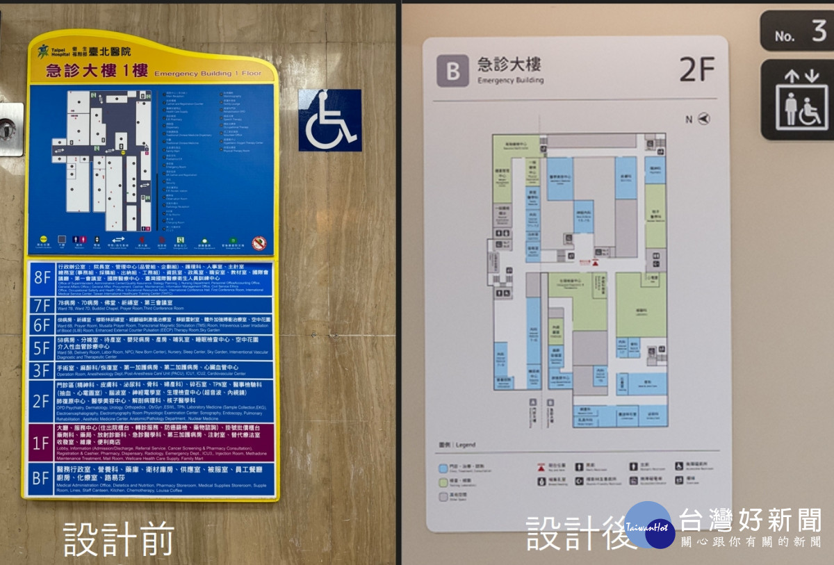 臺北醫院鄭舜平院長指出,近年來持續推動「智慧醫療 × 永續醫院」雙軸轉型,而「尋路體驗」的改善,也是將「以人為本」的思維與設計導入醫療場域的具體實踐。導入設計專業模組,不只是換了標示牌,而是從視線高度、文字大小、顏色辨識到動線邏輯都進行了重新盤點與優化,確保設計真正對使用者友善,也期望藉此建立可複製的範本,供其他醫療機構參考。