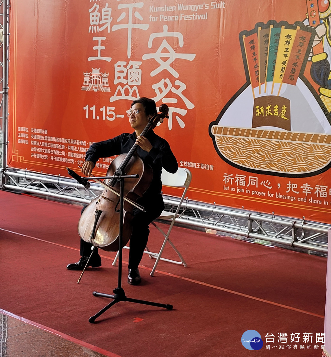 徐振能處長表示,2025平安鹽祭活動內容,有鹽祭3部曲、平安鹽袋發放、囡仔公童玩節、導覽解說、搏杯挑戰賽、晚會、祈福鹽發送、6廟祈福集章、觀光圈市集等活動。行前記者會也請來大法師吳文進為平安鹽袋祈福,大提琴家張正傑現場演奏。