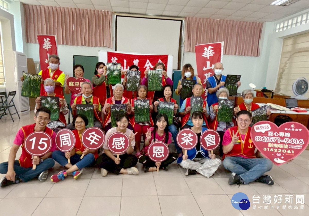 華山基金會麻豆愛心天使站23日於南勢里活動中心,舉辦「建站15週年感恩茶會」,特別安排長輩手作「蒲公英畫作」,讓長輩們透過創作表達內心的感受與祝福。活動不僅提供長輩社會參與的機會,也在動手創作的過程中,培養自信、獲得成就感。