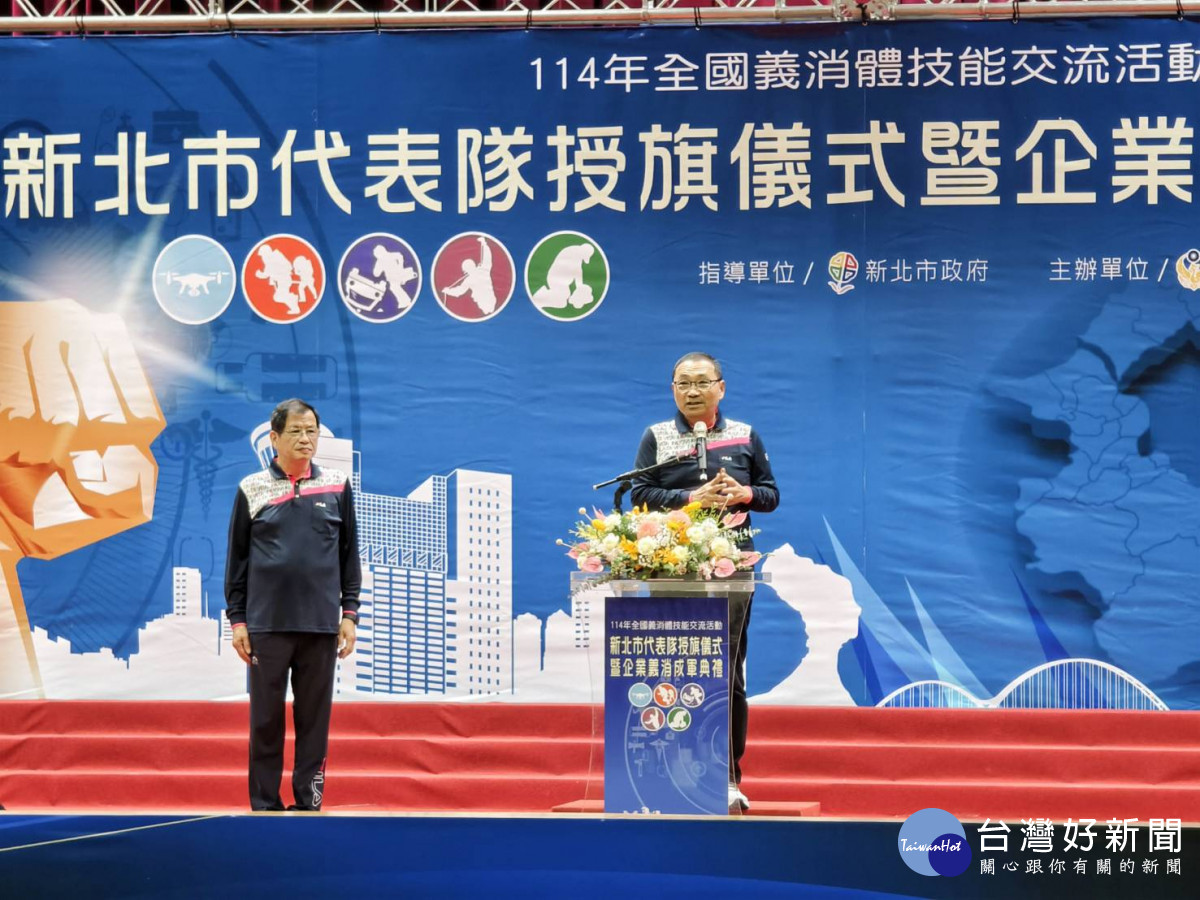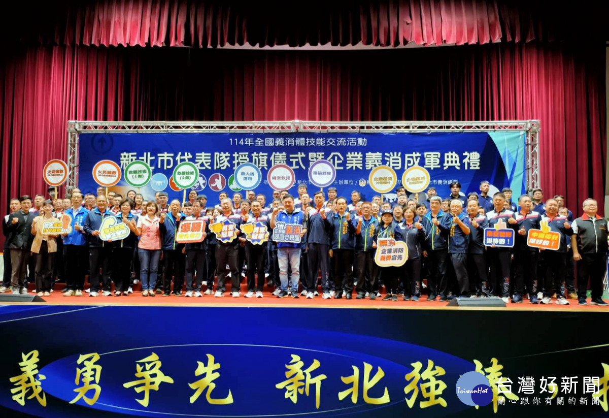 新北市企業義消今(24)日正式成軍,市長侯友宜與義消總隊長蔣根煌共同主持典禮,展現市府對義消團隊與企業義消的高度重視,藉由授旗儀式鼓舞即將代表新北市出征全國義勇消防人員體技能交流賽的選手士氣,同時宣告企業義消正式成軍,象徵公私協力防救災體系的再度強化。