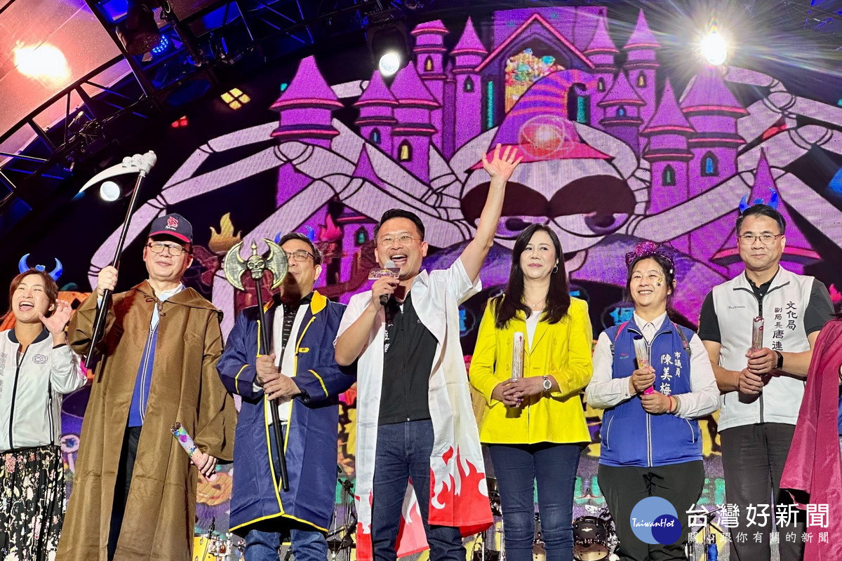 桃園市副市長蘇俊賓25日晚間前往桃園藝文園區,出席「2025樂活桃園-古堡狂歡.金曲派對開城演唱會」。時表示,「桃園萬聖城」是市民一年一度最期待的城市嘉年華,去(113)年吸引逾103萬人次參與,期待今(114)年人潮再創新高。萬聖城不僅是一場節慶活動,更象徵桃園多元文化的融合與包容。桃園是全台新住民、都會原住民及跨國工作者最多的城市,透過萬聖節這個全民同樂的城市派對,展現文化交流與創意碰撞的熱情,展現桃園作為最具活力與包容力城市的魅力。
