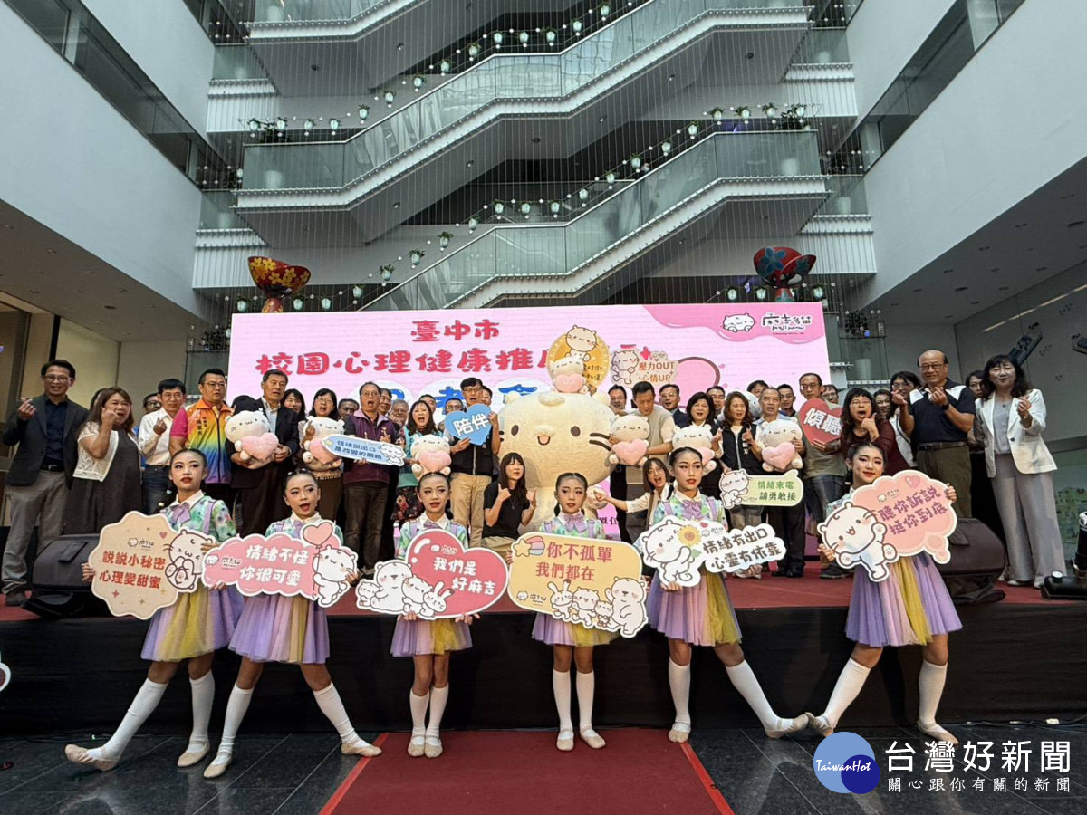 為推動校園心理健康,臺中市政府教育局114年度特別與知名IP「麻吉貓」合作,以其溫暖且正向的形象,提升社會大眾對校園心理健康議題的關注與重視;31日教育局於市府惠中樓舉辦記者會,並在活動會場設置打卡拍照區,民眾可手持心理健康標語拍照留念,增進互動性並強化宣導效果。