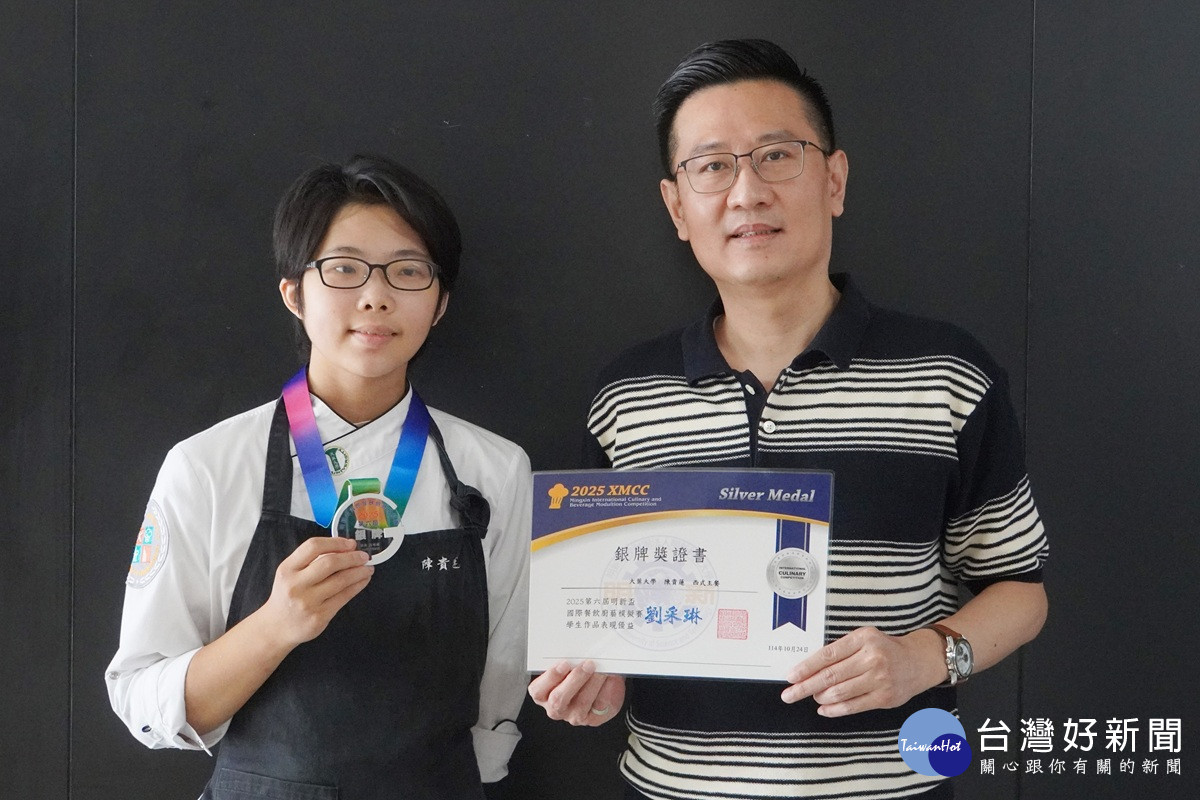 大葉大學餐旅管理學系彭建治教授指導學生參加「2025第六屆明新盃國際餐飲廚藝模擬賽」,在激烈的國際級競賽中表現亮眼,勇奪1金2銀,展現實作學習的豐碩成果。其中,選手鍾耀慶、鍾耀樂是兄弟,今年第三度參加賽事,同樣抱回好成績。