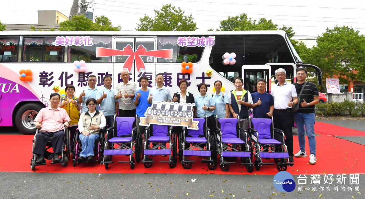 活動中,同步啟用價值約千萬元的大型復康巴士,象徵彰化在無障礙交通服務上的新里程碑。王縣長特別感謝新北市議長蔣根煌媒合「中華上永好讚會」等101位善心人士,共同捐贈136台輪椅(價值約74萬8,000元)給彰化縣,充實輔具資源中心的媒合與借用服務,讓更多身心障礙及失能者能安心出門、提升生活品質,打造更具包容與關懷的社會。