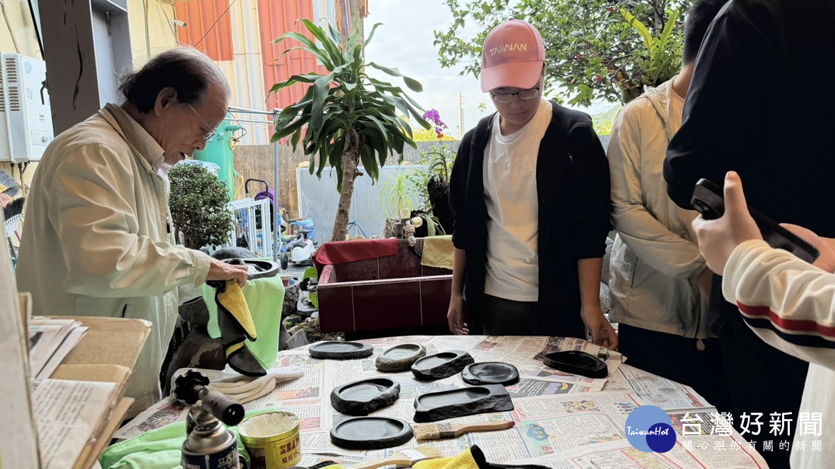 董坐老師講解濁水溪石硯工藝,新加坡師生專注聆聽