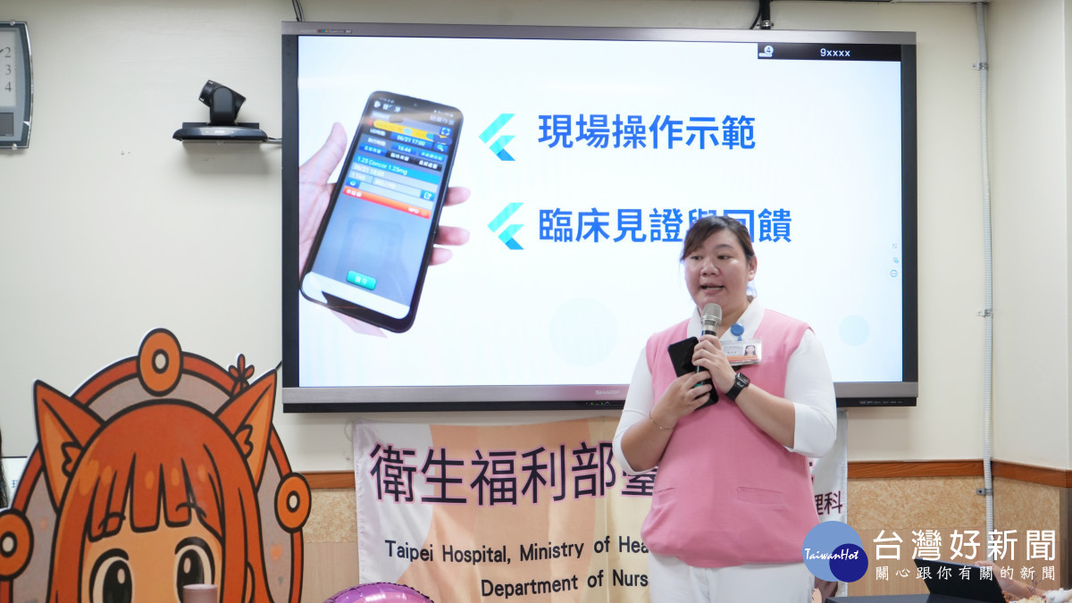 護理科黃麗萍主任指出,臺北醫院近年以「打開智慧魔法盒」為核心理念,持續導入多項智慧照護系統。護理智能手機重量僅235克,裝置輕巧,應用於給藥、抽血、輸血等流程,平均可為每位護理師節省約3分鐘的作業時間,自動顯示與核對功能更有效降低病安異常事件。