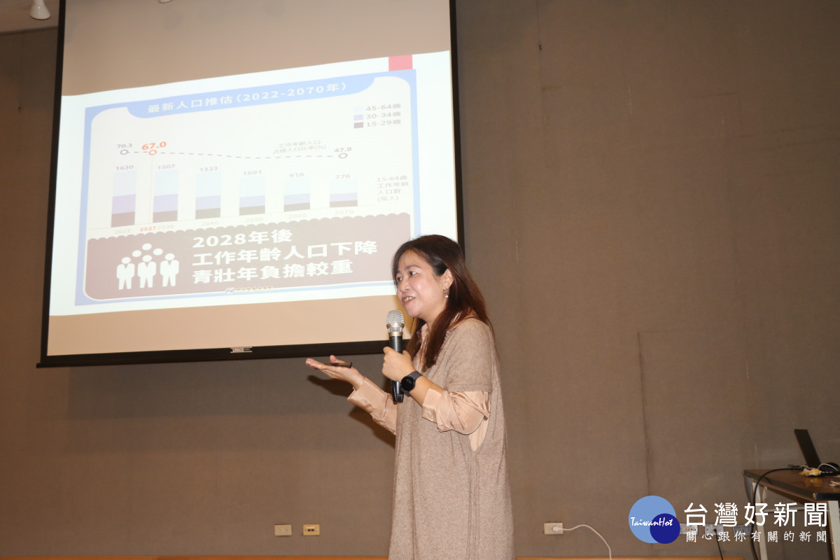 洪惠芬教授在專題論述說,男性在就業市場可以從畢業後一直做到退休,但女性婚後因育兒和照顧問題,在職場上變成「監視器媽媽」,一方面要工作,又得隨時注意孩子在托育的狀況。依據112年國家勞參率的調查圖像,婦女在婚後尤其是孩子出生後,整體勞參率是凹陷下去的,若要再重返職場,便會形成「生產老化」的問題。