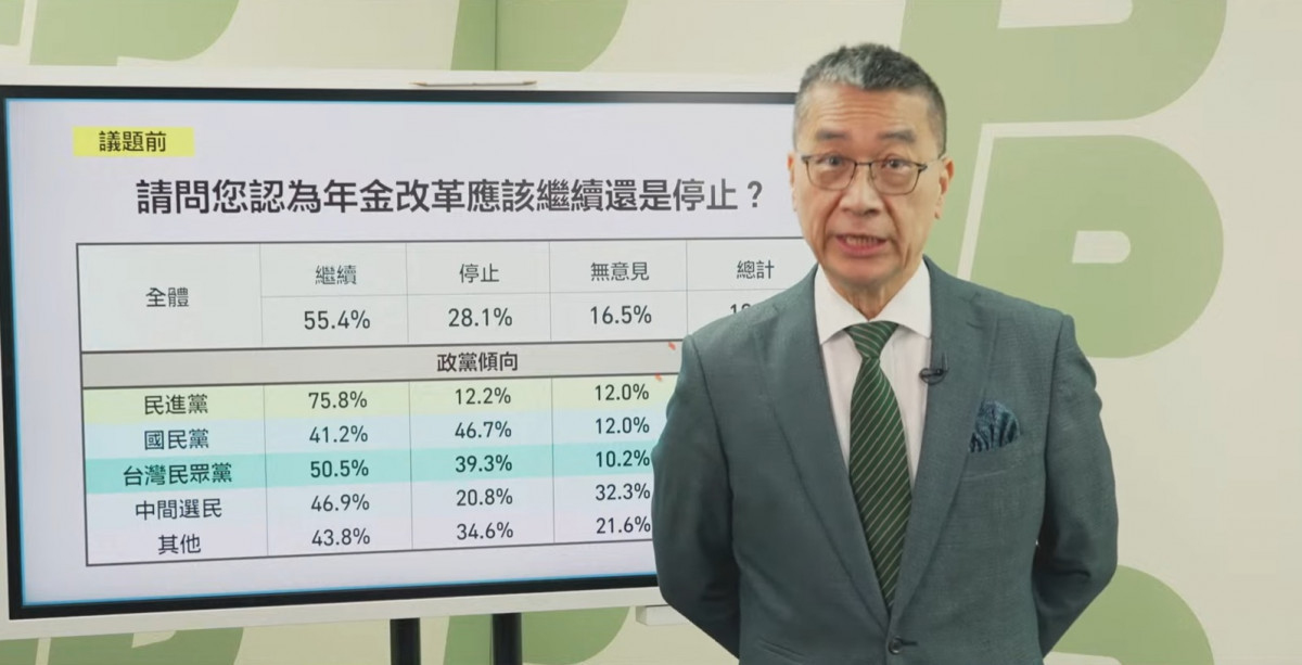 徐國勇表示,根據最新民調59.7%的民眾支持繼續推動年金改革,僅有31.7%贊成暫停改革;其中民眾黨支持者更有超過六成贊成續推年金改革,顯示不分黨派皆贊成持續年改。
