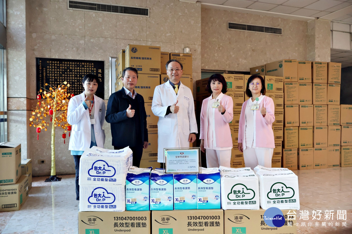 在114年度,基金會再度以實際行動傳遞關懷,捐贈市值約23萬元、共243箱醫護物資,包括成人紙尿褲M號40箱、L號48箱、看護墊40箱、替換式紙尿片75箱及濕紙巾40箱,協助醫院在照護需求日益增加的情況下,穩定臨床照護品質,減輕醫護人員物資壓力,提升整體服務效能。