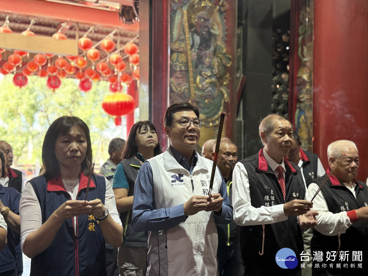 新北市副市長劉和然今(7)日上午赴蘆洲湧蓮寺參拜,恭祝觀音佛祖出家紀念日,盼觀音佛祖庇佑合境平安;而適逢農曆九月十八,顯應祖師聖誕,劉副市長也前往林口頂福巖參拜,恭祝老祖聖誕千秋、香火鼎盛。