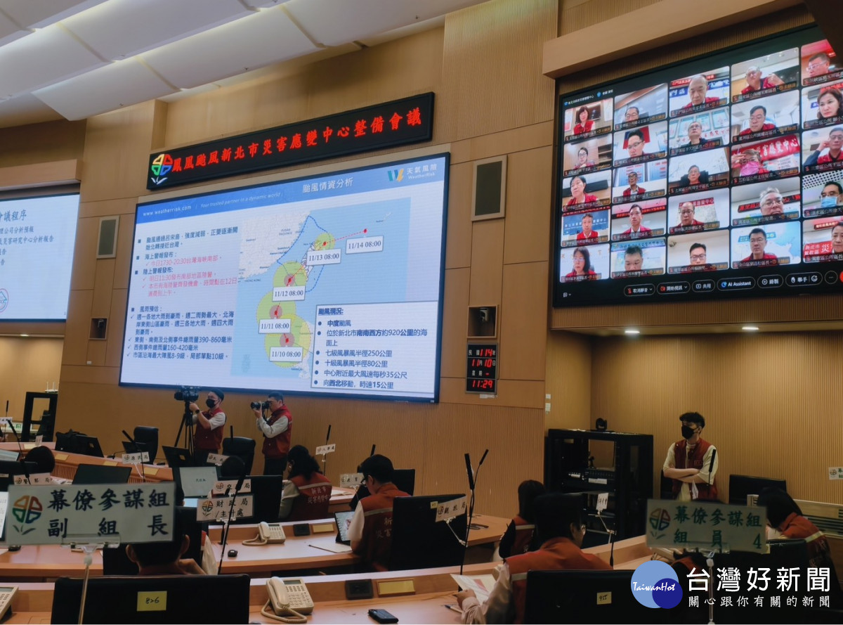 因應鳳凰颱風從西南接近北臺,新北市災害應變中心今(10)日11時30分由市長侯友宜主持召開整備會議,聽取氣象團隊分析評估風雨影響及各單位防颱工作整備情形後,並要求市府團隊落實各項自主檢核,特別強調應著重各項復建工程的防颱準備。