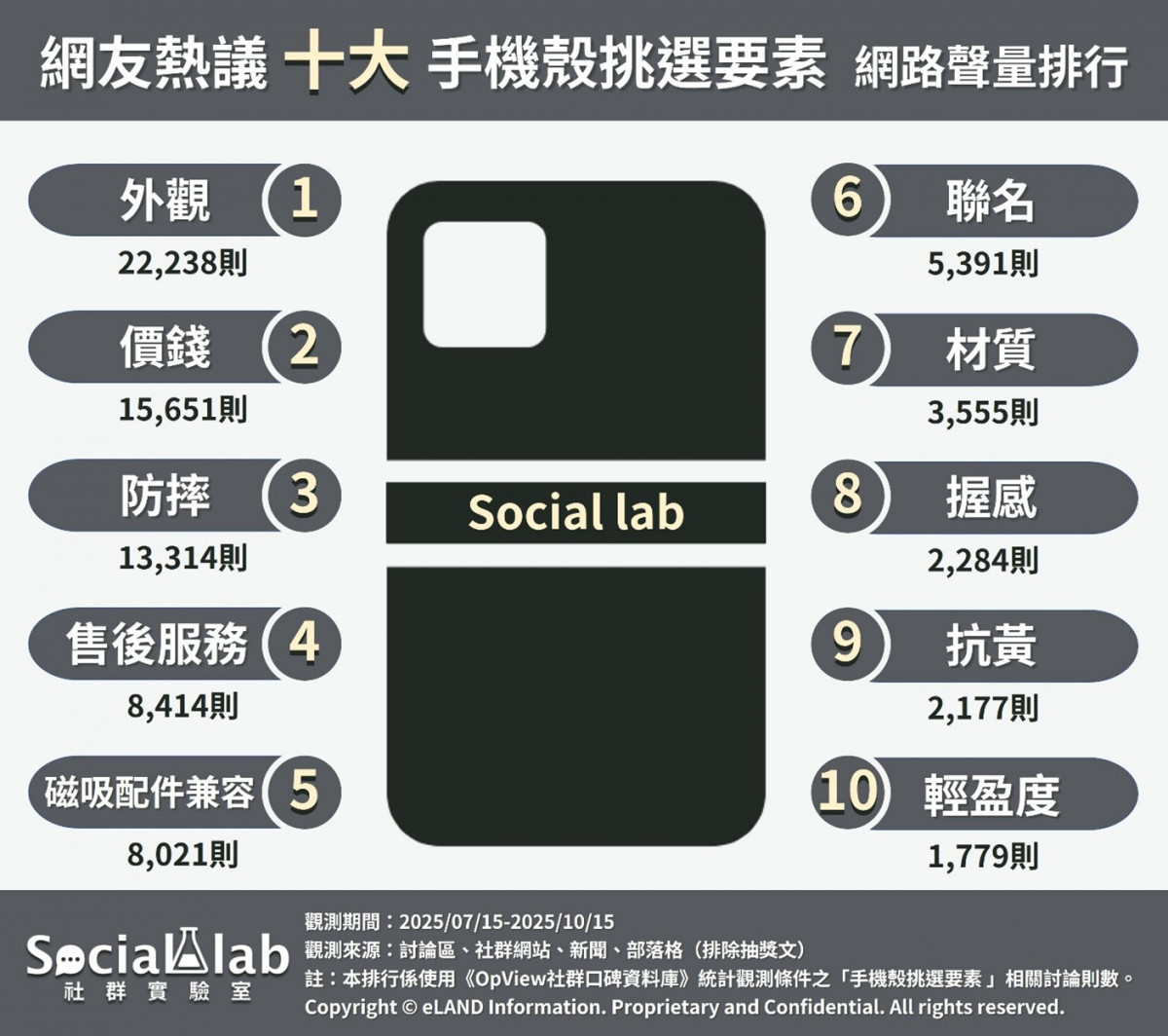 觀察近三個月網友針對「手機殼挑選要素」的討論,可以發現手機殼的「外觀」穩居聲量榜首。許多網友認為,手機殼早已超越單純的保護配件,成為展現生活品味與個人美學的日常單品。