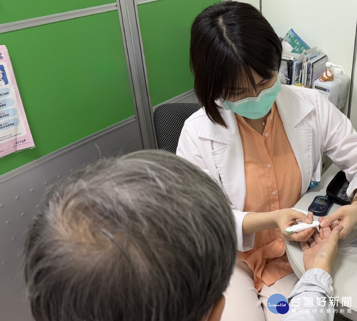 新竹臺大分院糖尿病衛教師指導正確的量測步驟,協助病人建立自我照護能力。