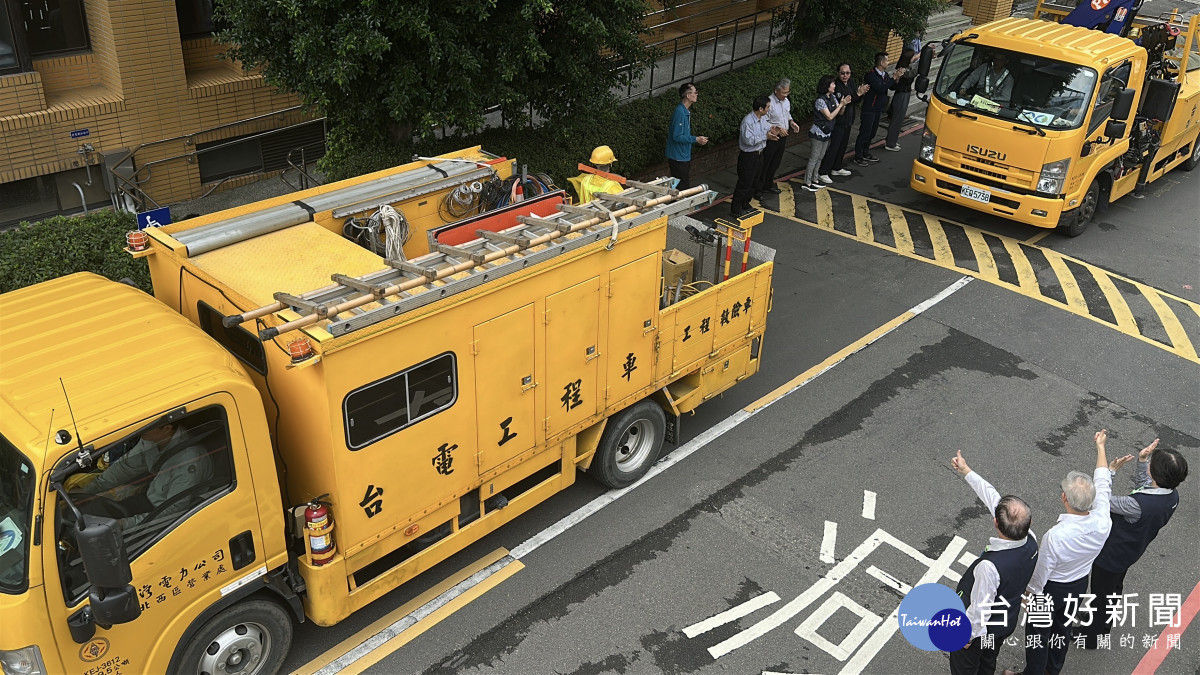 昨(11)日宜蘭地區遭大豪雨重創陸續傳出停電災情,累計逾7000戶停電,爰繼山陀兒、凱米、丹娜絲等颱風後,北西區處再度跨區支援宜蘭區處,今(12)日上午9時30分動員搶修工班攜大口徑抽水機、發電機數具及吊臂車等搶修機具前往宜蘭區處,協助電力修復。