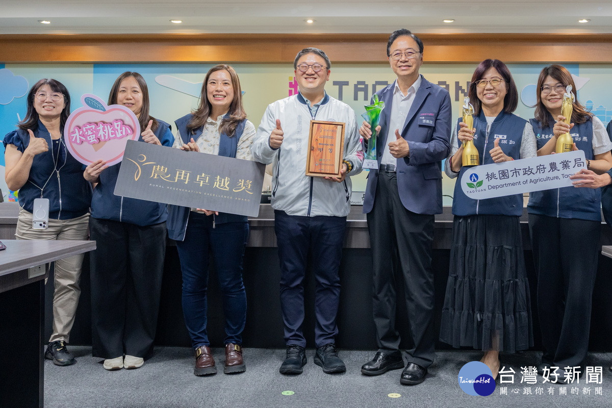 桃市府農業局榮獲「2025美國謬思創意大獎」兩項金獎及農業部「農再卓越獎全國第二組第一名」、「甲等績優縣市」等獎項,12日於市政會議中獻獎。市長張善政表示,桃園農業推廣不僅在國內屢獲佳績,也受到國際肯定,顯見市府團隊在品牌塑造與活動創意上的努力深獲肯定。
