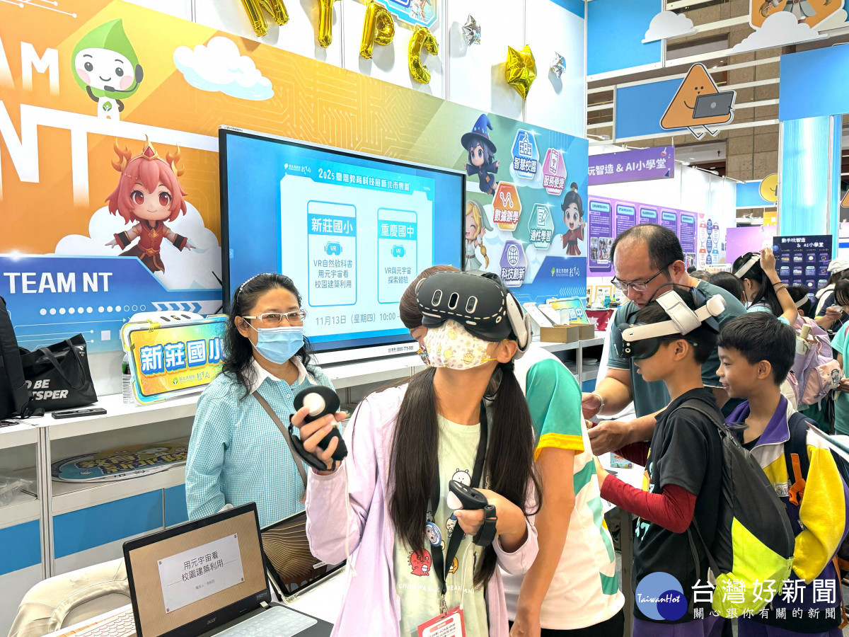 今年的教育科技展,新北市教育局規劃「智慧教室體驗區」、「數位公民挑戰區」、「教育數據探索區」、「AI助理體驗區」及「新北教育成果區」五大展區,呈現生成式AI教學應用、VR沉浸課程與教育大數據平臺等多項亮點,吸引參觀者駐足體驗。