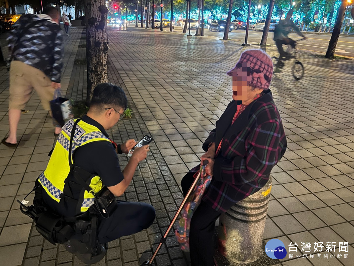 昨(14)日晚間新北市歡樂耶誕城人潮湧現,板橋分局板橋派出所警員吳峰安、廖詩維擔服會場勤務期間,接獲民眾通報於新站與站前路口有迷失長者需協助。警方旋即趕抵現場,發現該名賴姓老婦(女、88歲)疑因重聽、行動緩慢且表達不清,獨自走失於人潮中,身上亦無攜帶行動電話與證件,無法確認身分及聯絡其家屬,所以先帶返派出所安置照護。