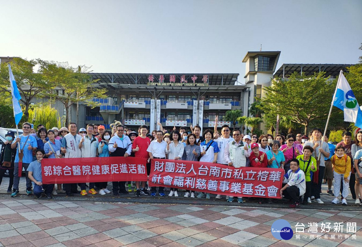 台南市郭綜合醫院關心員工的身心健康,特與財團法人榕華基金會,在安平國中合辦「郭綜合醫院Happy健走Go健走」活動,近600人參與,大家深深體會晨起健走、有益身心健康。