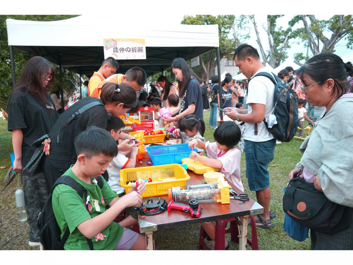 除了闖關遊戲外,現場也開放民眾報名參加「恐龍DIY」與「玩具拆解體驗」,小朋友們在志工協助下,親手操作、拆裝玩具零件,有的發現了彈簧原理,有的玩得不亦樂乎,展現驚人的觀察力與創造力。