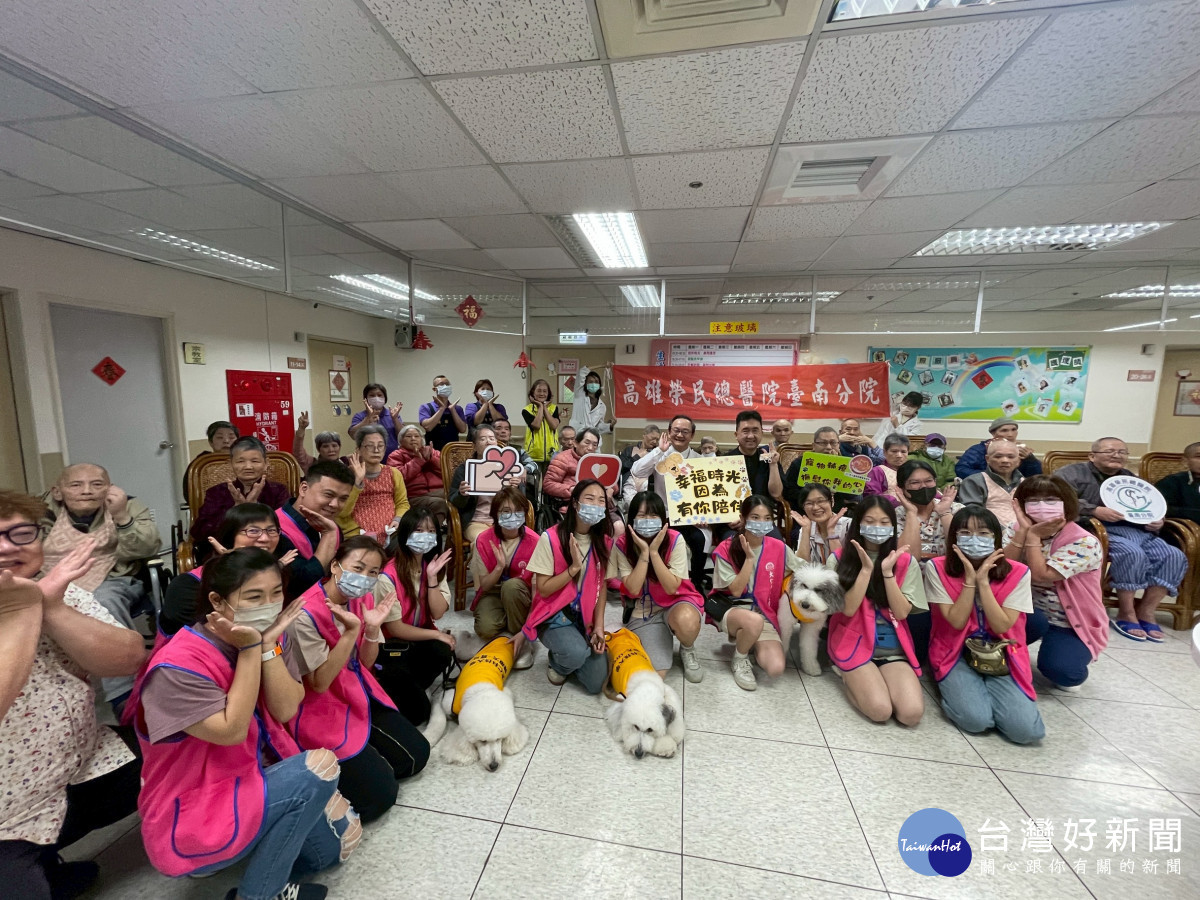 高雄榮民總醫院臺南分院攜手大仁科技大學寵物照護暨美容系,18日在精神與一般護理之家舉辦動物輔助活動(Animal-Assisted Activity,AAA),讓長者在溫馨互動中感受關懷與笑容。