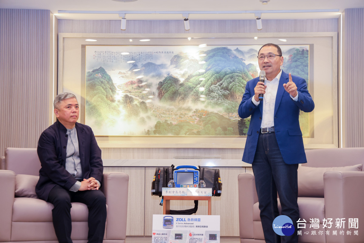 侯友宜指出,新北市OHCA患者康復出院率從99年的3.1%不斷進步,目前已提升至11.68%,為六都最高,更是世界排名第二,今年底前目標達成12%。提升OHCA患者康復出院率的關鍵正是「秒秒必爭」,三重雲林同鄉會社福委員捐贈的生理監視器就像即時雨,讓第一線消防夥伴救護時有更先進的設備,在到院前做好即時監測,並提前傳輸相關資料提供醫師精準診斷,讓前端的救護及後端的醫療效能大幅提升。