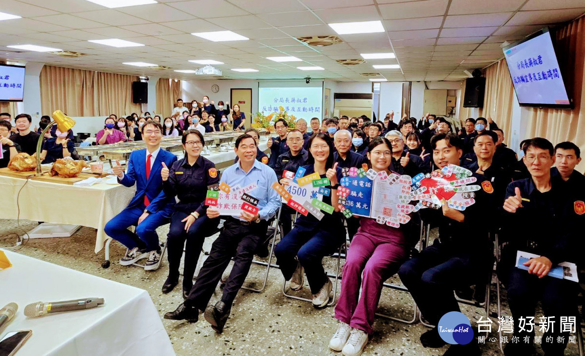 為提升市民防詐意識、降低受騙風險,永和分局昨(20)日於聯合勤教與新北市牙醫師公會共同舉辦反詐騙宣導活動,分局長蔣叔君親自向現場牙醫師、護理人員還有分局各單位同仁們共120人宣導反詐騙,避免落入詐騙陷阱,會後牙醫師公會理事長温世政也特別準備感恩節火雞大餐,向長期在第一線守護永和治安的執勤員警表達感謝與慰勞。