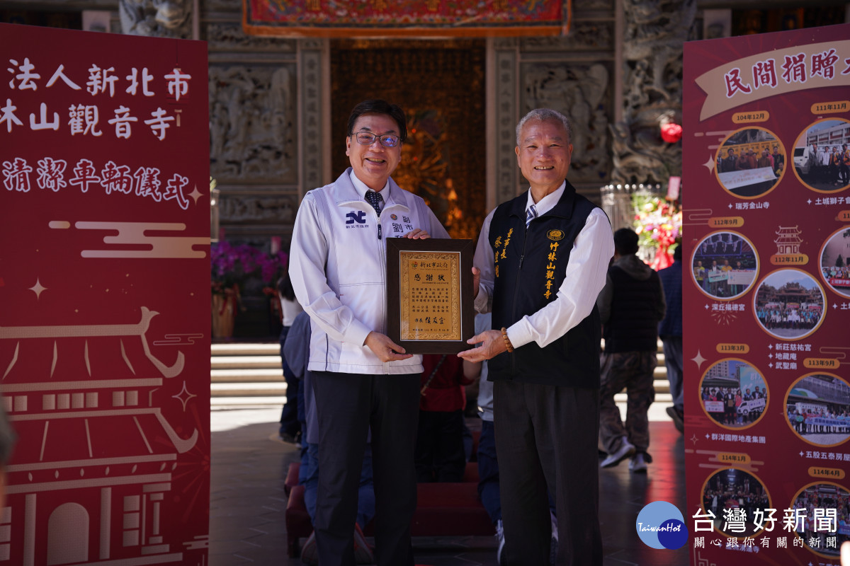 劉和然表示,竹林山觀音寺長年關懷社會、推動公益,不僅提供弱勢救助與社區關懷服務,積極參與地方公益事務。此次捐贈資源回收車,不僅象徵宗教信仰與公益行動的結合,更展現出對地方環保工作的實際支持與關懷,攜手清潔隊共同守護新北市的生活環境與品質。