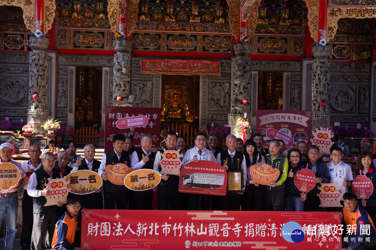 環保局指出,目前新北市共有887輛垃圾車與1,272輛資源回收車投入服務,因應人口成長及新興區域開發,市府今(114)年度編列約3.1億元(含中央補助)購置113輛清潔車輛與機具,提供各區使用。惟仍有近12.74%車輛屆滿汰換年限,急需更新。竹林山觀音寺此舉不僅協助清潔隊補充能量,也加速車輛汰舊換新進程,充分展現公私協力的成果。