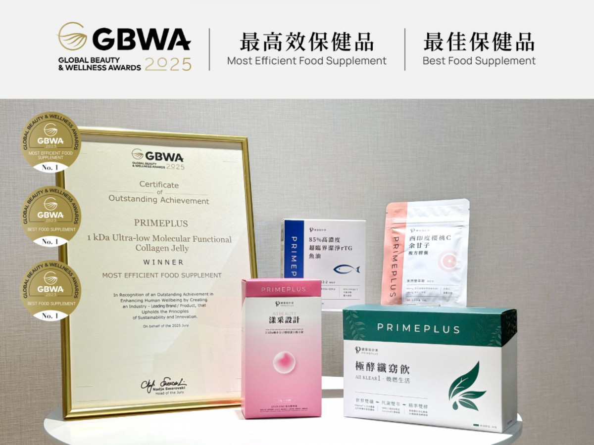 臺灣保健食品領導品牌「PRIMEPLUS健康設計家」於英國Global Beauty & Wellness Awards(GBWA)2025 年度評選中獲得多項獎項。「GBWA全球美容與健康大獎」具高度公信力,以獨立、無企業贊助的評選制度聞名,評審團成員全由來自歐洲、美國、亞洲等地的頂尖專家組成,並以匿名方式進行嚴格評比,評審項目涵蓋產品功效、成分安全性、創新性、市場價值等面向,是全球品牌每年積極爭取的國際認證。