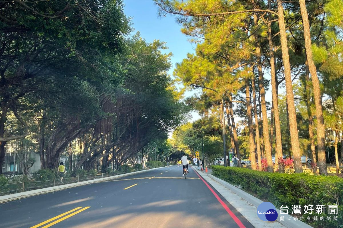 為落實節能減碳,本工程採用通過ISO14067認證之熱拌瀝青混凝土,並保留貫入層、採土方零外運方式,最大幅度降低碳排放。全面使用1英寸改質瀝青混凝土,提高路面耐久度及行車效能,同時也是全國第一條同時以維護管理指標(MCI)、國際糙度指標(IRI)、鋪面狀況指數(PCI)三項指標驗證的校園道路。完工後三年經再次檢測,道路品質(MCI)仍優於日本首都高速公路的年度目標維護標準。