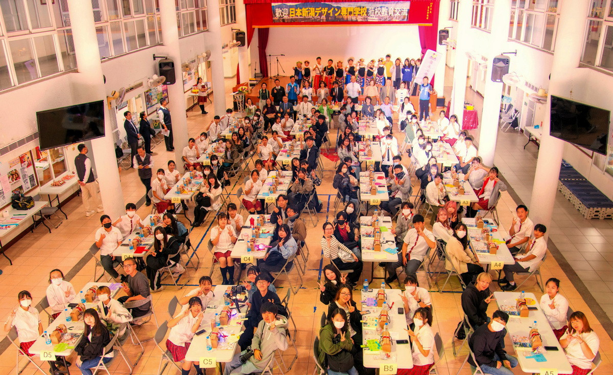 為歡迎遠道而來的貴賓,由學生擔任學伴,陪伴日本師生品嚐台灣經典小吃「雞蛋糕」,並體驗製作和南投高山咖啡品嘗,再配合12月節慶現場手工製作雪花球,做為今日最具特色的伴手禮,五育學子實踐將南投特色「走出台灣邁向國際」的精神。