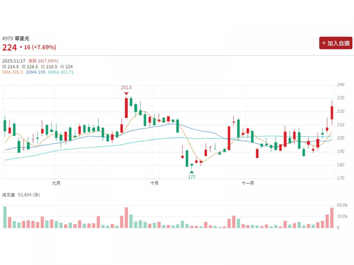 ▲圖片來源:CMoney  4979 華星光 K線圖