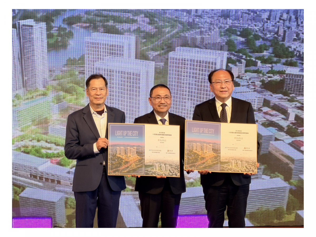 環宇上城董事長許崑泰(主照圖左)表示,這座開發規模超過25萬坪的複合型城市,透過TOD模式,以軌道建設為核心,結合土地開發利用,創造運輸、居住、商業三贏局面。展現新北市府積極推動的『軌道建設 × 城市發展』雙引擎策略,促進整體區域均衡成長。