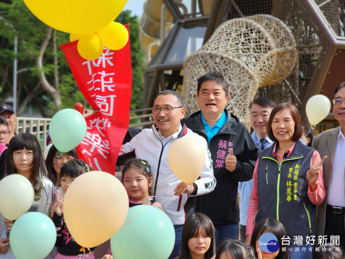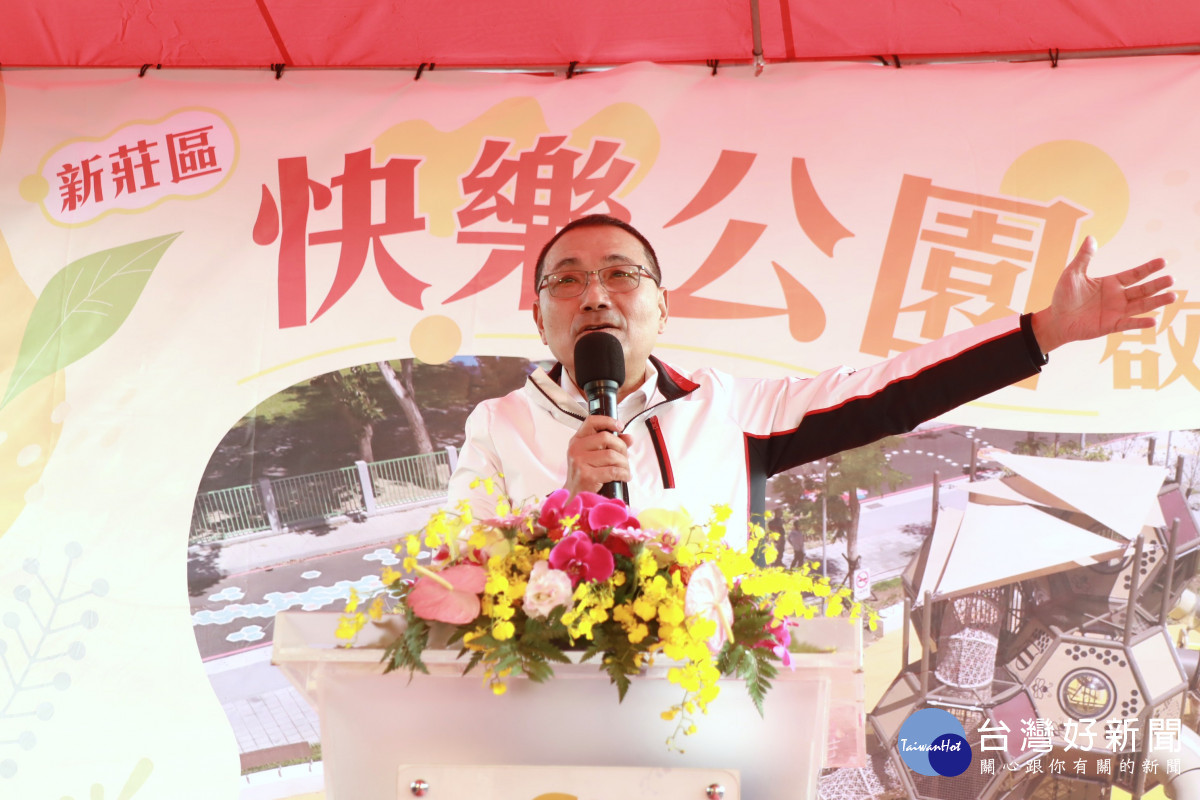 侯友宜強調,他任內積極推動全齡化共融公園,快樂公園依循「全齡友善、共融共享」理念設計,去年10月啟動開闢工程,投入經費約1億2,022萬元,滿足全齡化需求,提供多元友善空間,完工後有助於提升新莊整體生活品質。