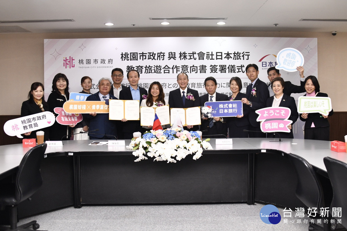 桃園市政府28日與日本第二大旅行社「株式會社日本旅行」(Nippon Travel Agency,NTA)正式簽署「教育旅遊合作意向書(MOU)」,建立跨國策略夥伴關係。市府期望結合桃園多元的教育體驗場域與豐富觀光資源,再加上日本旅行社在修學旅行領域的深厚經驗,攜手打造桃園成為日本學生海外教育旅遊的首選城市,深化兩地年輕世代的文化交流。