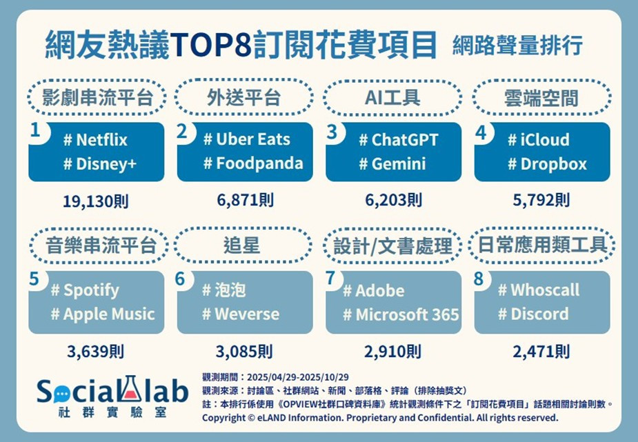 除了以上項目,雲端空間、追星會員、音樂串流服務等,都顯示訂閱型服務正重塑現代人的消費樣貌與生活節奏,逐漸滲入你我的日常中。
