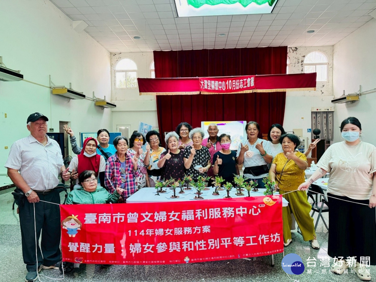 市府社會局曾文婦女福利服務中心今年9月至11月間與七股區大潭里社區發展協會合作,辦理為期8堂課程的「覺醒力量:婦女參與性別平等工作坊」。以音樂、故事與手作為媒介,引導漁村婦女從自身生命經驗出發,重新理解女性角色與價值,讓性別平權從社區扎根、向外綻放。