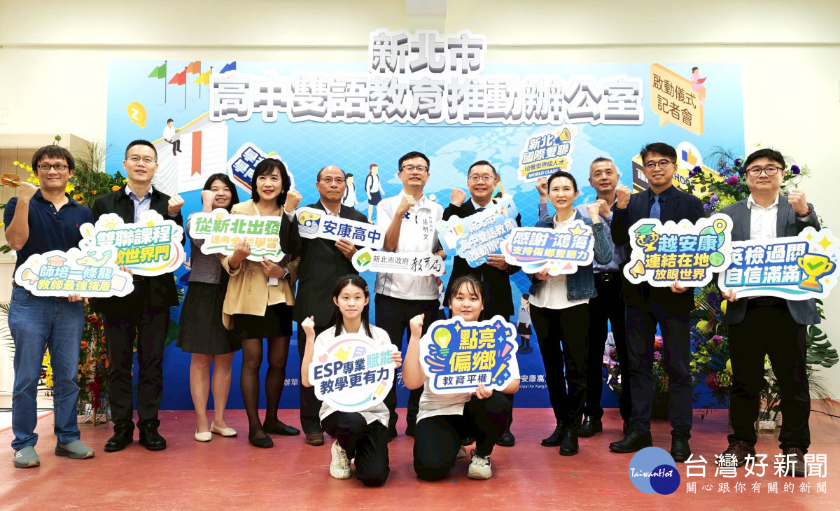 為加速推動雙語教育、打造接軌國際的校園生態圈,新北市教育局今(2)日於安康高中啟用全國首座「高中雙語教育推動辦公室」。教育局長張明文表示,這象徵新北正式從過去的「單點式研習」全面升級為「體系化、標準化、可持續」的雙語推動模式。本次更攜手臺灣師範大學與鴻海教育基金會,整合產官學力量,建立全國最完整的雙語課程、師資與培育支持網絡,為新北學子奠定走向世界的核心能力。