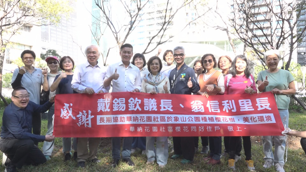 台北市信義區三犁里內的象山公園,除了是民眾休憩的場所,其實也是知名的賞櫻景點。每年農曆春節前後,一旁社區跟公園種植的小富士櫻花樹就會盛開,吸引不少民眾前來觀賞。其實這些都是華納花園社區發起,至今已持續12個年頭,總共種植130株櫻花樹,而台北市議長戴錫欽也全力支持社區,一起來種樹,希望象山公園成為美麗又浪漫的景點。