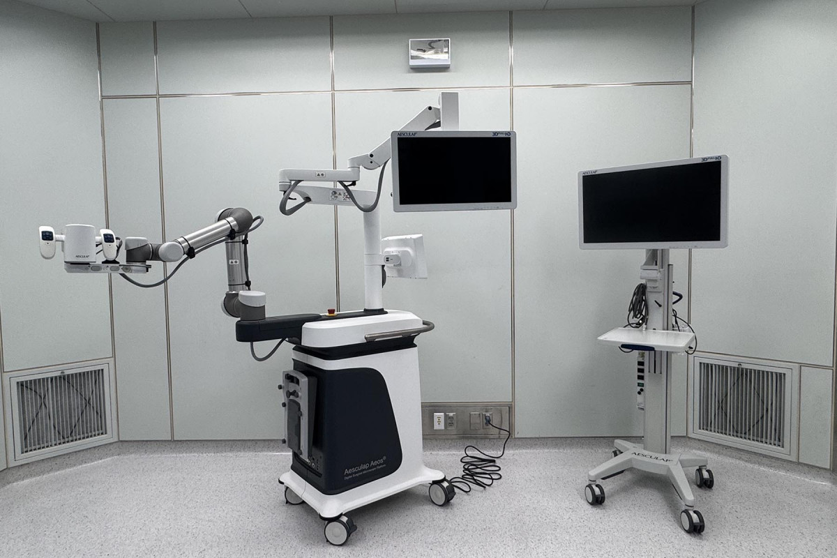 林思維醫師說明,長期來,神經外科醫師為了看清楚非常細微的神經血管,必須將身體鎖在不符合人體工學的顯微鏡目鏡上,長時間的不良姿勢,造成醫師肩頸極度疲勞,影響雙手操作的微細穩定度。因緣際會,2024年4月,他前往捷克參與3D機器人數位顯微鏡研討會,備感收穫良多。經與院方洽談購買事宜,獲得全力支持。