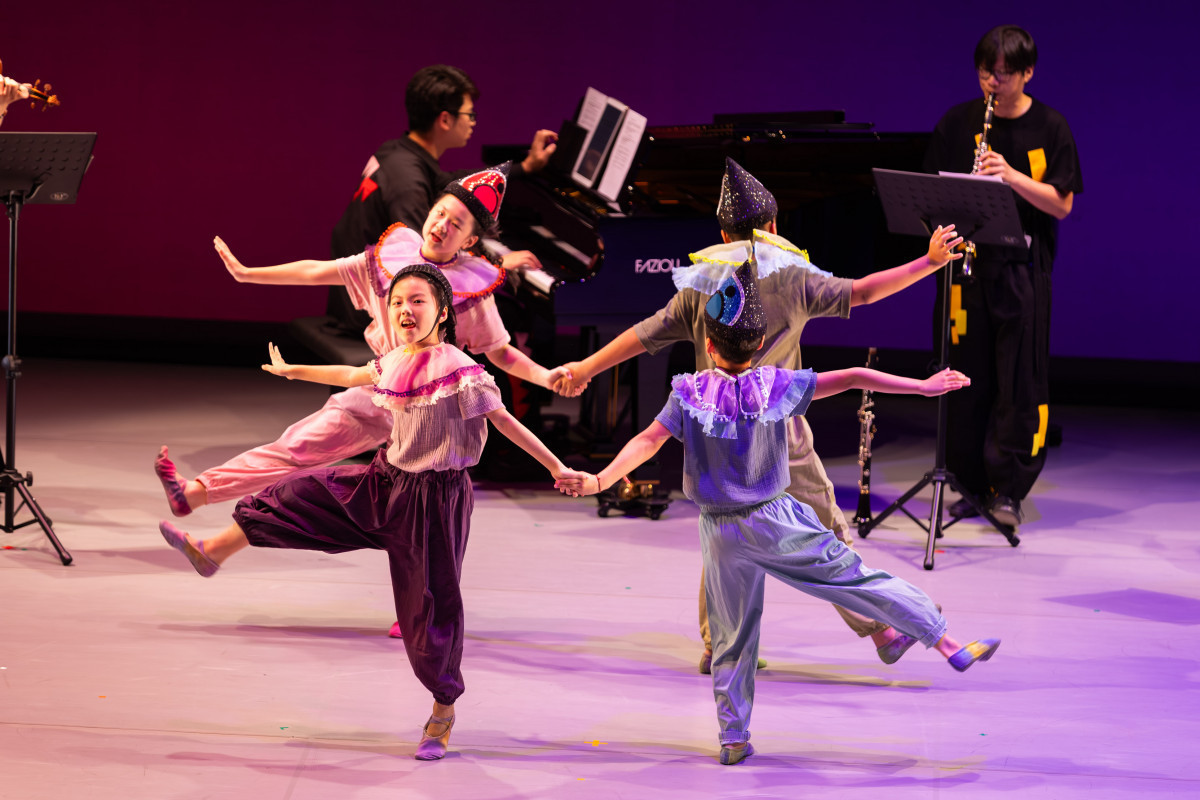 舞台上,弦樂四重奏現場演奏《天方夜譚》,從細膩的弦音到富戲劇性的節奏,共同營造濃厚的異國氛圍。小舞者的參與,則以舞蹈的身體讓故事畫面立體,讓每一場演出都成為獨一無二的奇幻冒險。