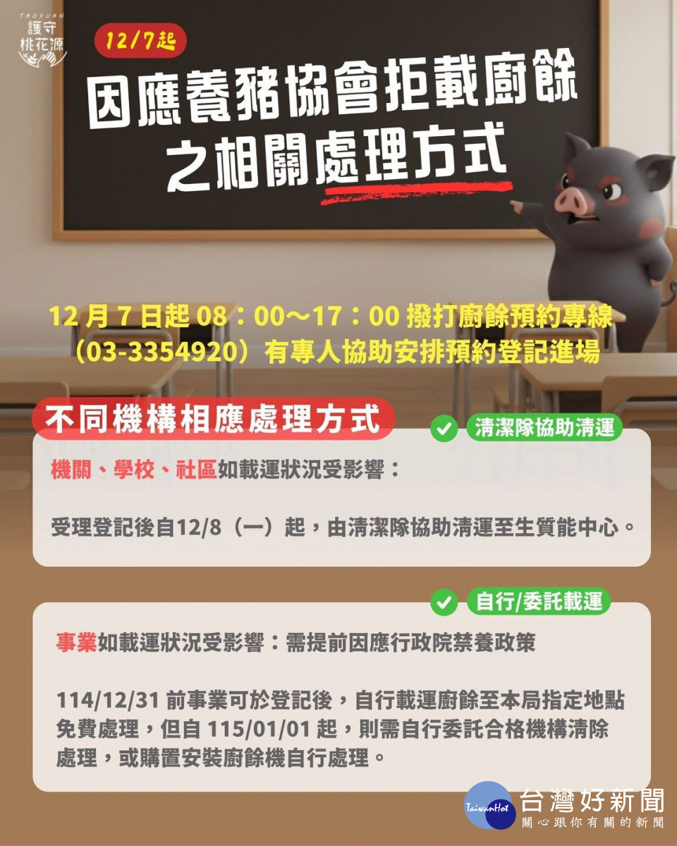 桃園環保局啟動緊急協助機制, 一通電話立即支援,不讓廚餘無處可去。
