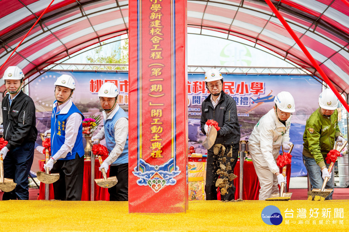 桃園市長張善政8日前往大園區,出席「桃園市大園區航科國民小學第一期新建校舍工程」開工動土典禮。張市長表示,大園地區近年人口快速成長,住宅與生活機能持續提升,在地的潮音國小也接近飽和。為因應在地就學需求,市府推動航科國小新設計畫,第一期工程總經費約8億元,致力為學童打造安全而完善的校園學習環境。