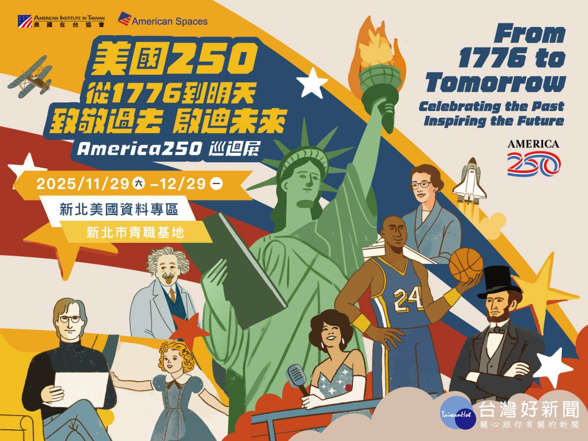青年局表示,本次AIT為迎接美國建國250週年,在台舉辦「美國250:從1776到明天,致敬過去,啟迪未來巡迴展」,特別將首站選在擁有眾多青年人口的新北市辦理,展覽內容包含許多互動體驗,如:美國英雄心理測驗、由AI生成美國國歌星條旗樂譜構成的「華盛頓聲音肖像」展示、各州歷史與特色的「閃耀50星地圖」等,互動的展品設計,讓民眾可更認識美國歷史及該國民族文化的發展歷程。
