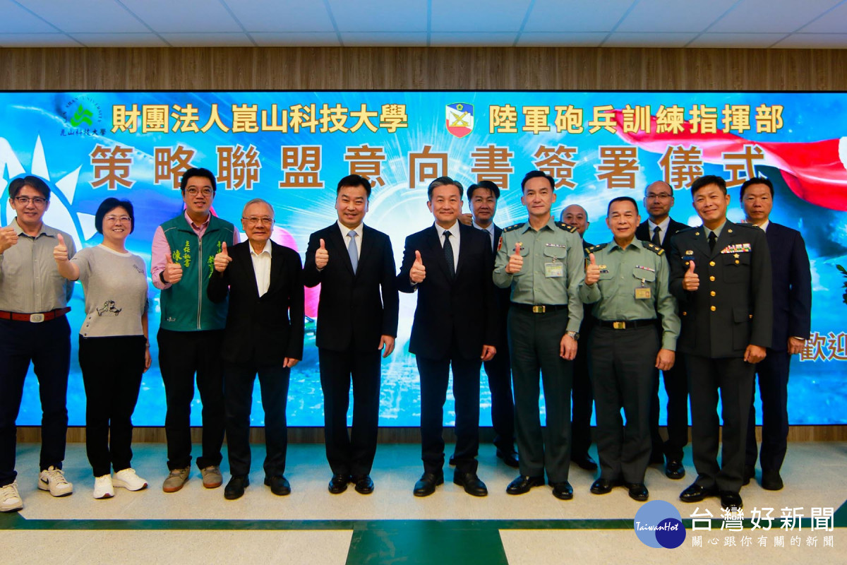為提供官士兵進修機會,在王定宇立委協調促成下,崑山科技大學與陸軍砲兵訓練指揮部簽署策略聯盟意向書。簽署儀式於砲訓部湯山營區舉行,由李天祥校長、指揮官李韋德少將共同主持。李天祥校長表示,此次與砲訓部合作是深化產官學重要一步,該校將持續投入最優質師資與教育資源,與砲訓部共同打造國軍進修的最佳平台。